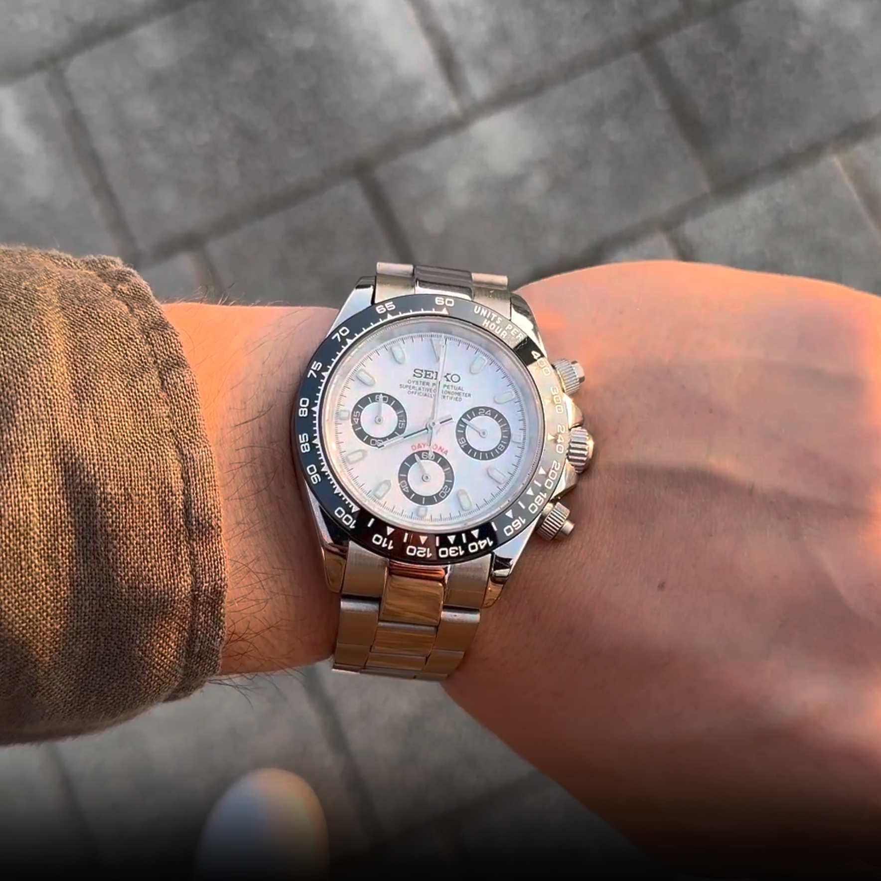 Inspired by the legendary Daytona design, the Watch Mod Seitona is a 40mm masterpiece that blends motorsport-inspired aesthetics with cutting-edge engineering. Featuring the prestigious Seiko VK63 hybrid movement, this watch combines the precision of quartz with the smooth mechanics of an automatic chronograph, offering both reliability and sophistication.