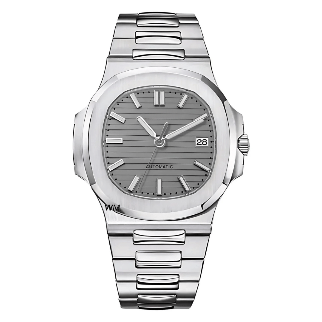 Inspired by the iconic Nautilus design, the Watch Mod Nautiko is a 41mm statement piece that fuses timeless luxury with modern reliability. Powered by the renowned NH70 automatic skeleton movement, this watch brings together elegant aesthetics and mechanical precision—perfect for those who appreciate refined craftsmanship without compromise.