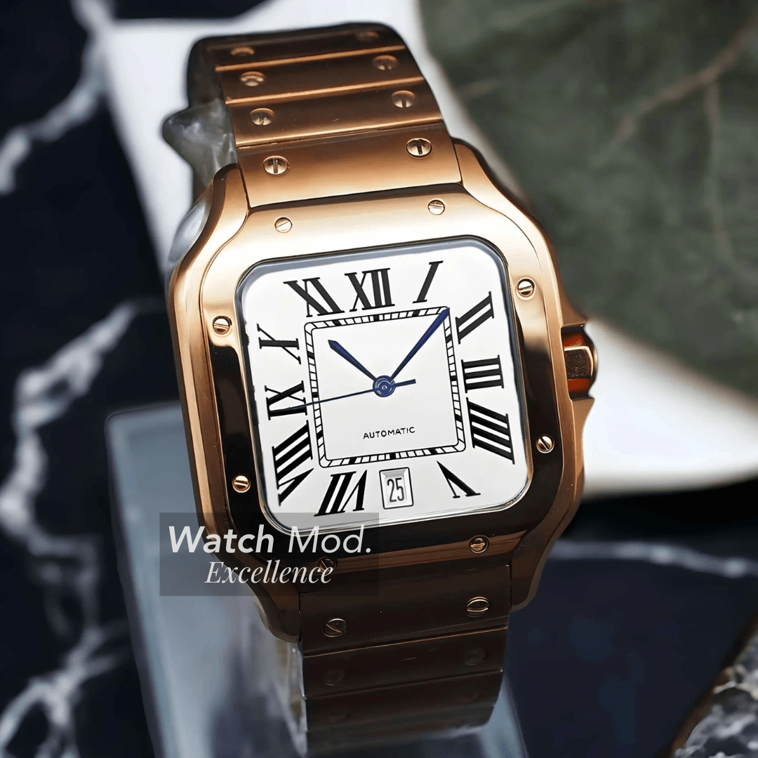Inspired by the iconic Santos design and powered by the  NH35 automatic movement, we present the Watch Mod Santeiko—a premium 38mm timepiece that perfectly balances excellence and affordability.
